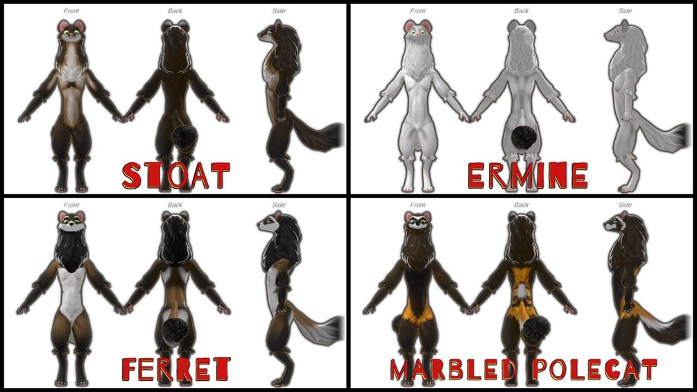 - 4 Fur texture options (Stoat, Ermine, Ferret, Marbled Polecat)